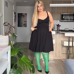 Tights just don’t fit. They fall down, bunch, struggle to fit over bigger thighs. They ladder easily and don’t stretch enough. Even though they are described as different sizes – in reality, they are just one width with different lengths, which is why 90% of people can’t find tights that fit – until now.
