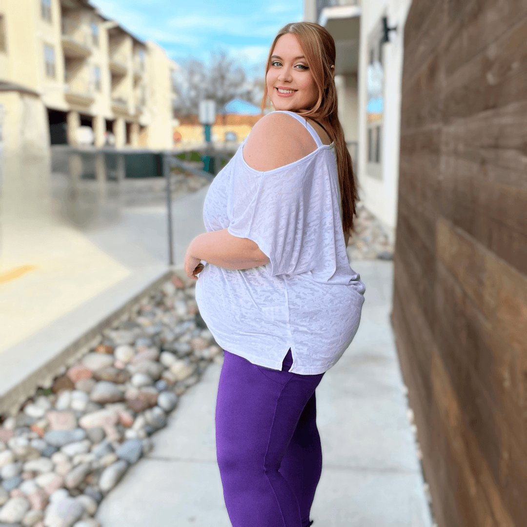 This white off the shoulder burnout tee will take you back to the 80s. Made from the softest lightweight, breathable flowy fabric, it’s a versatile fit, ideal for wearing loose for a relaxed look or tied and knotted for retro vibes. Wear with jeans and a shirt to head out on the town or with your favourite leggings to hit the gym.