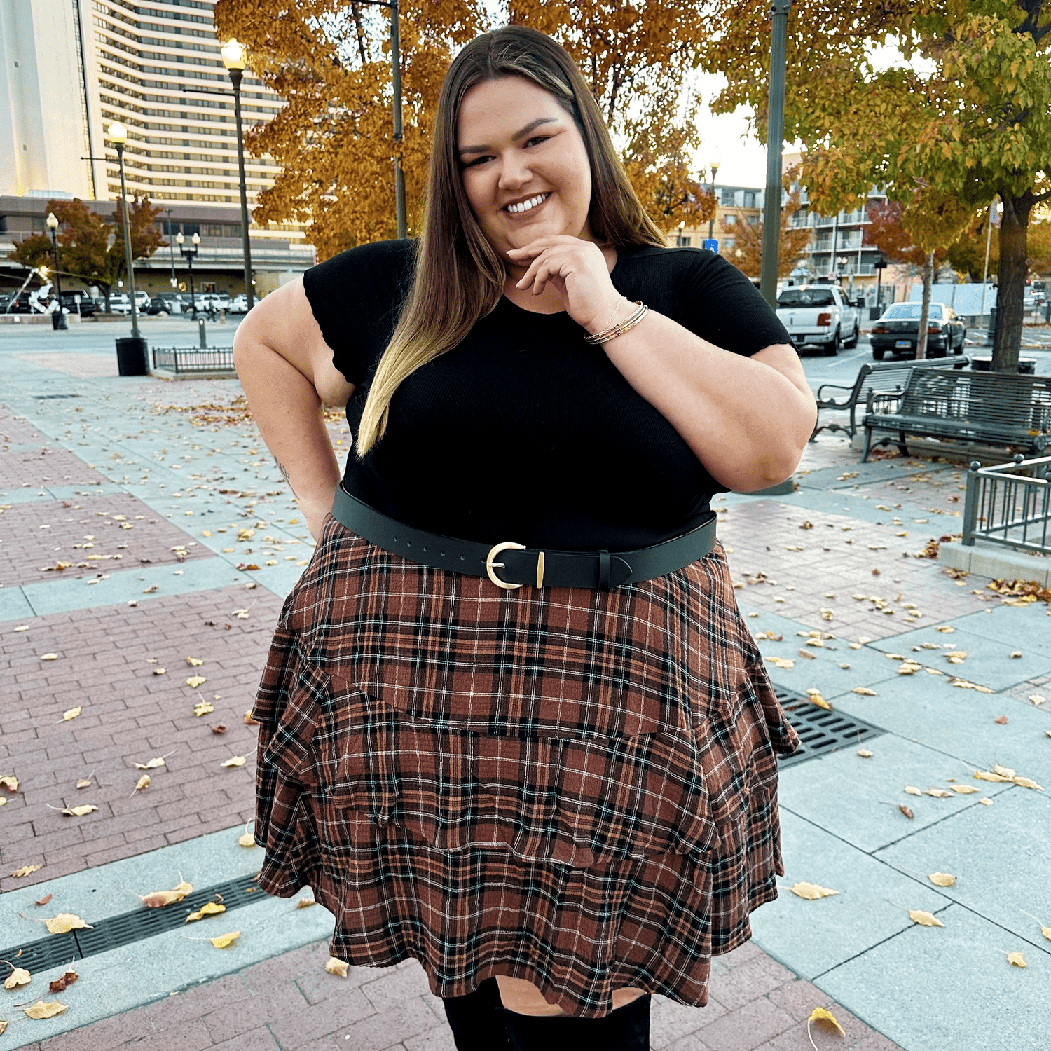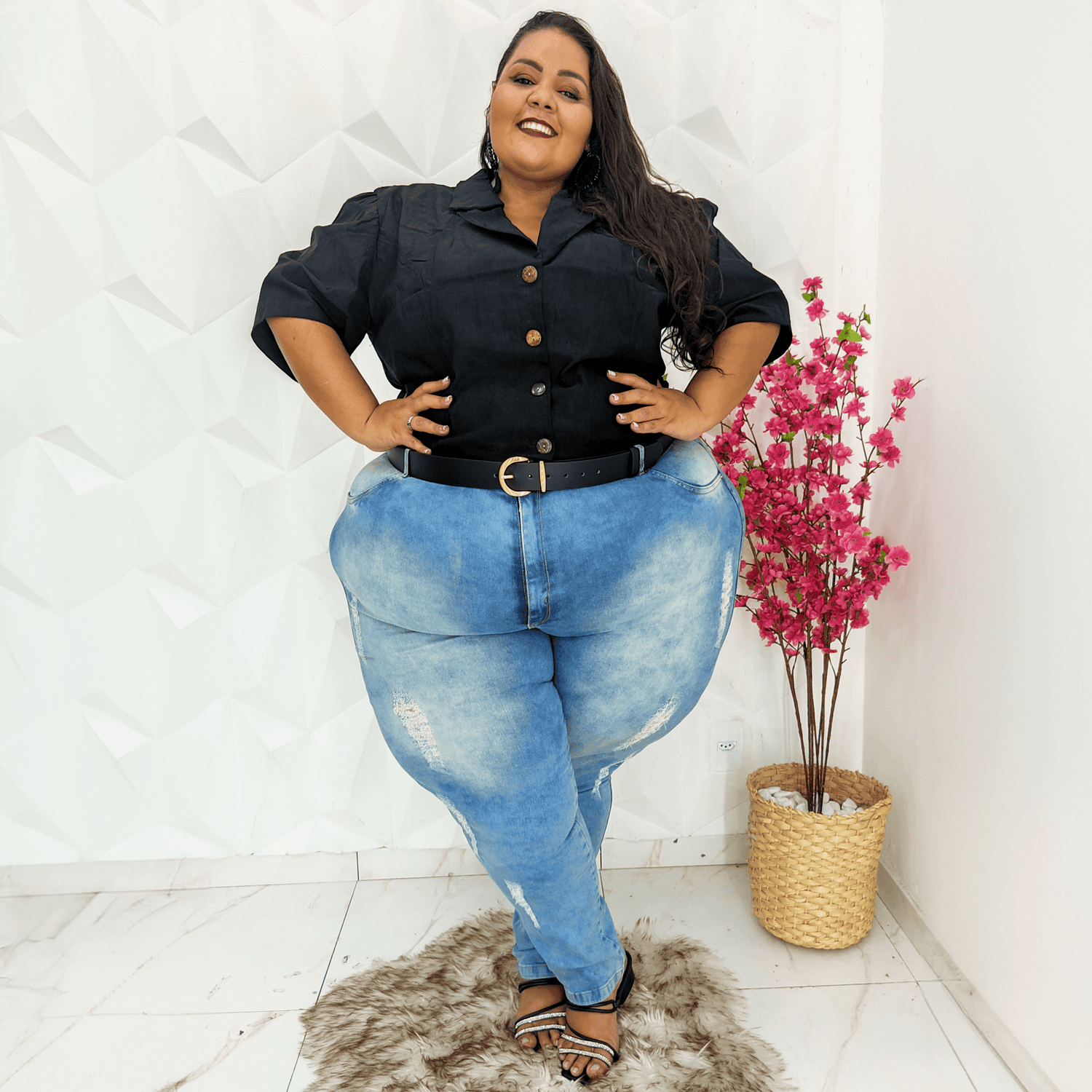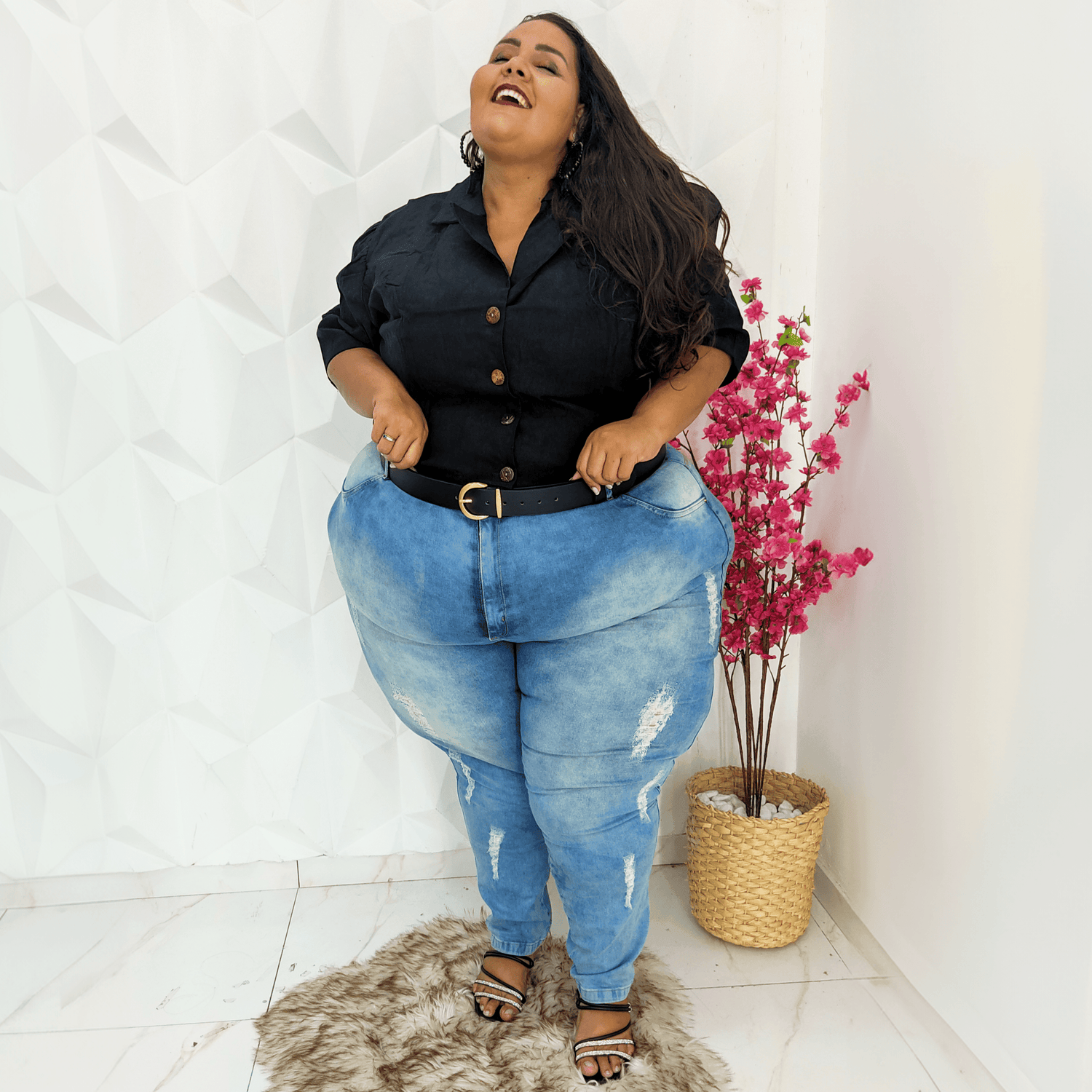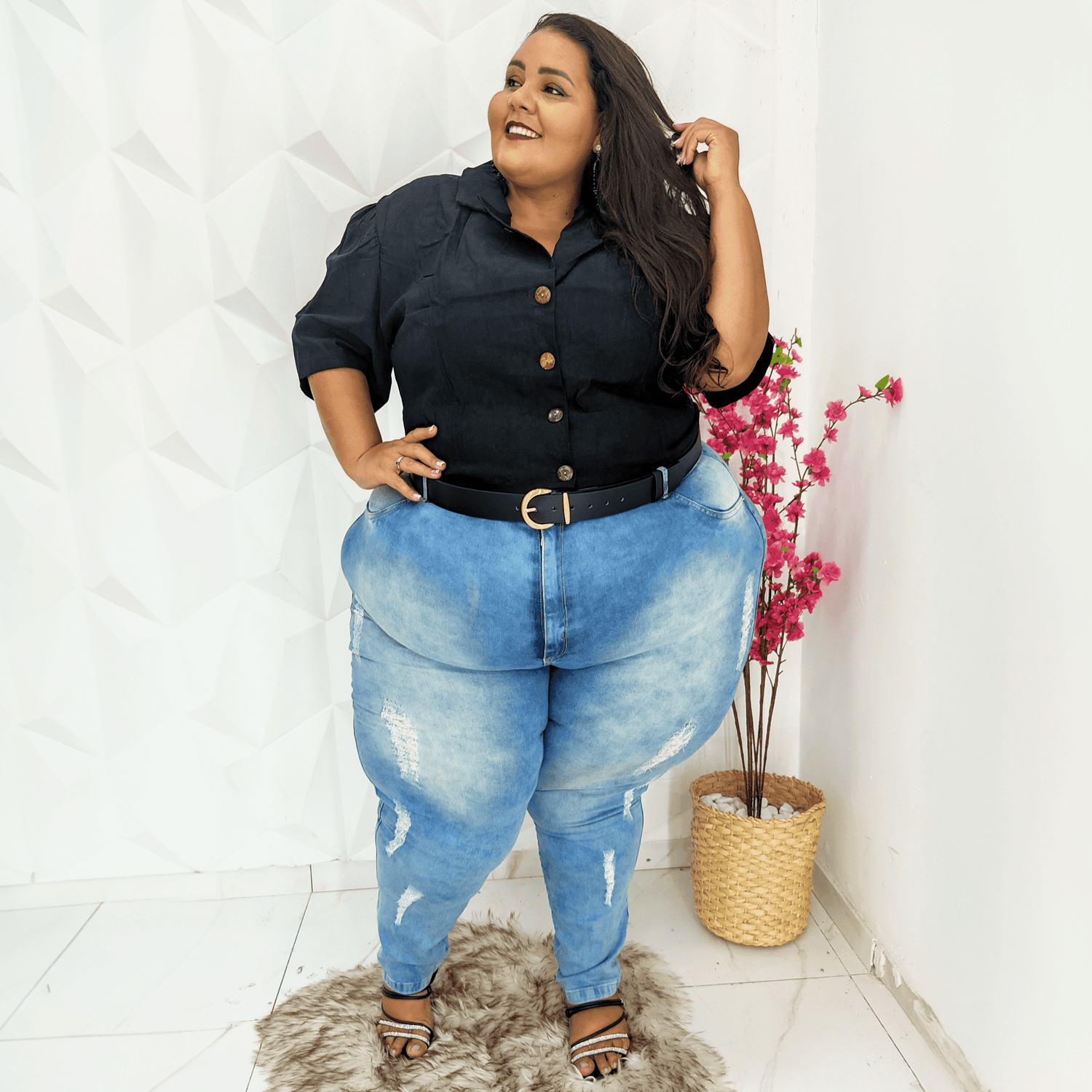 We've taken belts back to the drawing board and redesigned them with every body in mind. In black vegan leather with gold hardware, we have 9 different, fully adjustable sizes, no one size fits all here. These are completely vegan, the 'leather' is made from apples and even the individual components like the glue is vegan. Designed to be worn at the waist, this belt is comfy enough to wear all day long. Finally, a belt that actually fits.