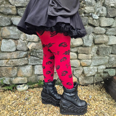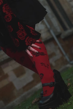 80 Denier Opaque Tights - Danu Skull Flower - Blood Red