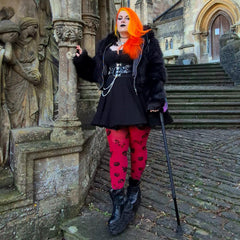 - Footwear: We love these with heavy boots, Mary Janes, or thick platform creepers. Keep it chunky to balance the bold pattern!