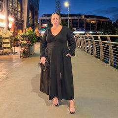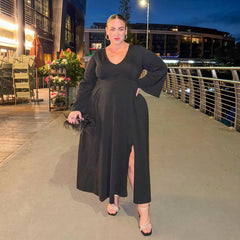 With its long, flowing bell sleeves and classic V-neck, this dress embodies the essence of gothic elegance. The midaxi length kisses just above your ankles, while a sultry side slit on the right leg adds a hint of drama, perfect for casting spells or summoning the spirits of the night.