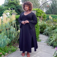Midaxi Bell Sleeve Dress - Black