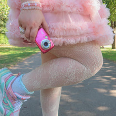 Bless my soul! This isn't your average fishnet. Look closer at Hot Patootie and you'll find a secret garden of intricate floral lace that’s full of surprises. It’s a whimsical pattern that adds a unique, detailed texture to any look, whether you’re pairing it with chunky boots or something more delicate.