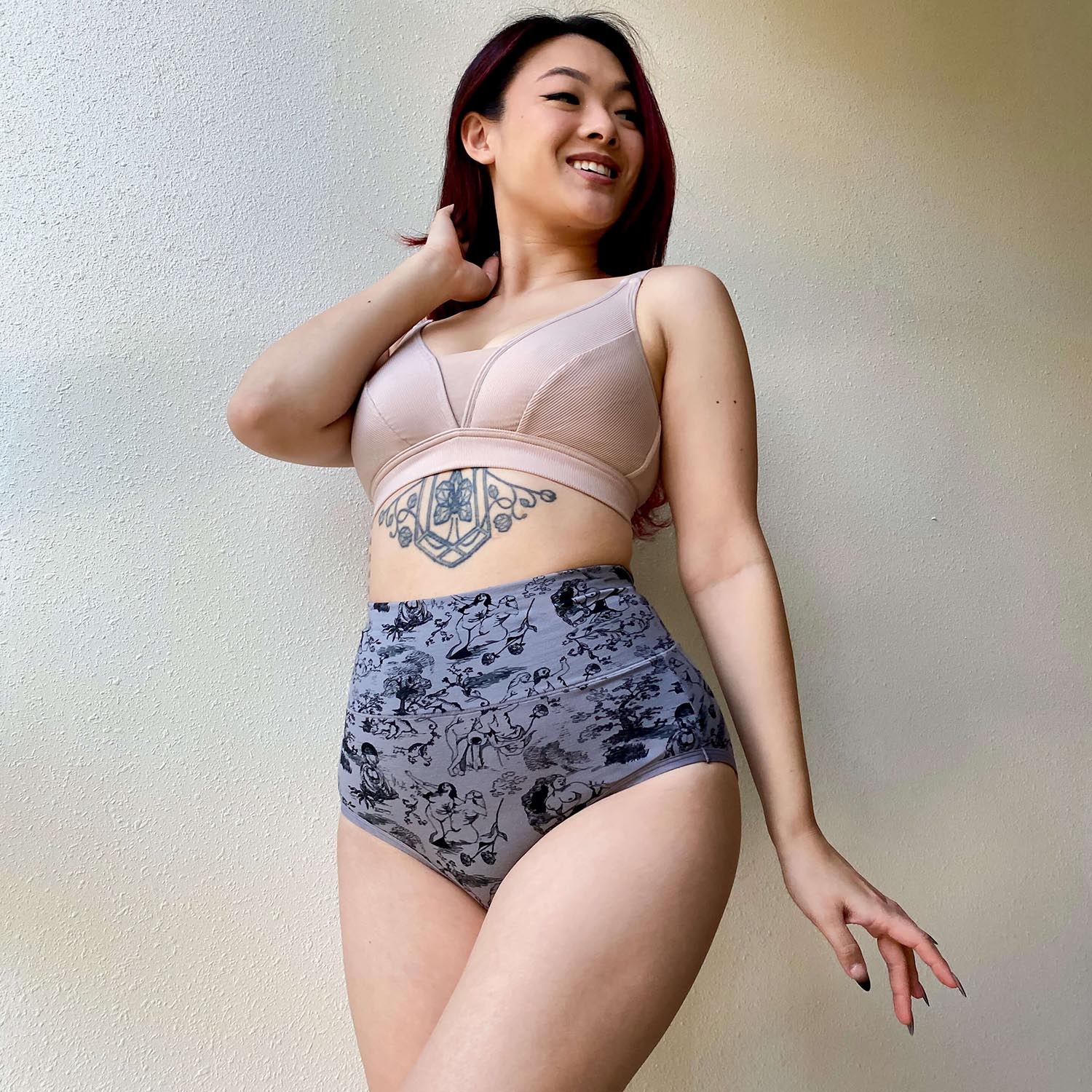 Snag's first printed knickers are here, bringing ultimate comfort to your underwear drawer. With a Toile de Jouy inspired print in L'amoir Noir, that is hand drawn in house by the Snag design team, they pair perfectly under the Passion Au Jardin dresses. High waisted with a thick waistband, these full coverage knickers really are game-changers.