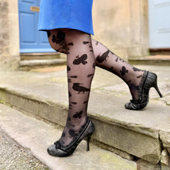 Witches assemble! Be the best dressed in your coven with our spell book inspired tights. We’ve developed a brand new technique to make these tights. It starts on a mesh base and means we can knit detailed flock inspired patterns onto the top. Think of it as very robust fishnets with gorgeous patterns on top! Perfect for spell casting.