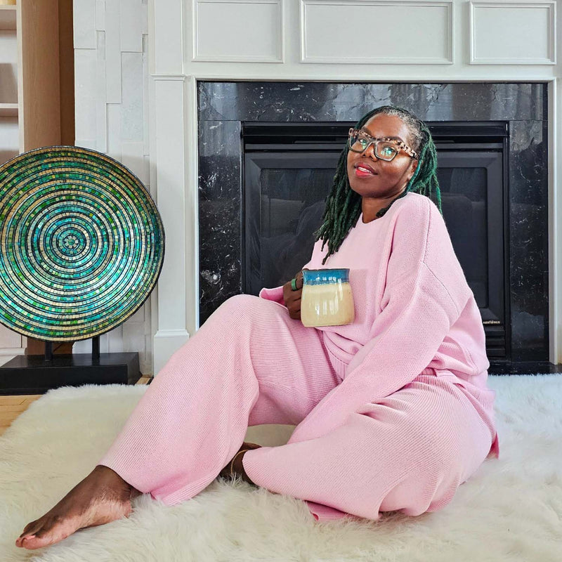 Knit Rib Wide Leg Trousers - Pétale de Rose