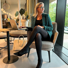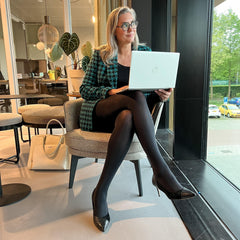 After lots of development and extensive trials we've created Huggy, light compression tights that fit. Huggy tights have a new knitting structure, specifically knitted with tension to provide light compression, ideal for anyone who works on their feet all day and needs that extra boost. The perfect blend of comfort and support, these tights are designed to help keep your circulation flowing in your legs and help prevent aches and pains after a long shift.