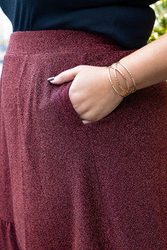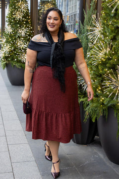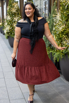Lurex Tiered Midi Skirt - Bordeaux