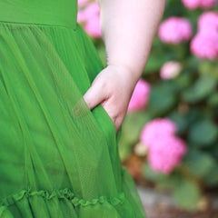 We paired the everyday comfort of a soft jersey t-shirt bodice with the flowing elegance of a full-length tiered skirt. The bodice features short sleeves, an elasticated waist, and gentle shaping at the bust for a perfect, easy fit that moves with you. The skirt's cascading ruffles are crafted from recycled mesh and float above a soft cotton-blend lining, so you can wear it with confidence. And because beauty should always be practical, it has pockets deep enough for your essentials.