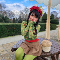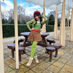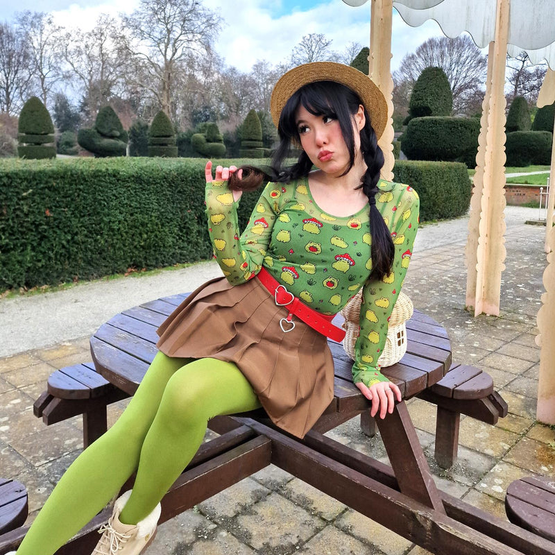 If cute frogs are your power animal, this one's for you. The Hoppy Meadow Mesh Top is set on a soft mesh base with playful green frogs dotted all over, from strawberry hugging cuties to frogs in tiny toadstool hats. This long sleeved top is bold, fun and completely impossible not to smile at. Long-sleeved with thumbholes, round neckline and a sleek fitted shape, it’s a statement that still feels easy to wear.