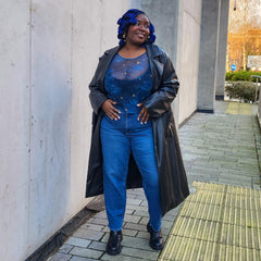The scoop neck and long sleeves keep you covered while teasing just a hint of your curves or whatever cheeky layer lies beneath. Slip it on once and you are instantly transported to a galaxy of style that feels like wearing the night sky on a clear winter evening. Team it with a black tank underneath for everyday modesty , or vamp it up with your favourite bra or lingerie for a bolder vibe. From day to night, pair it with your go-to skirt and heels for club-ready sparkle, or throw it over jeans and boots to bring a touch of the cosmos into your daily adventures.