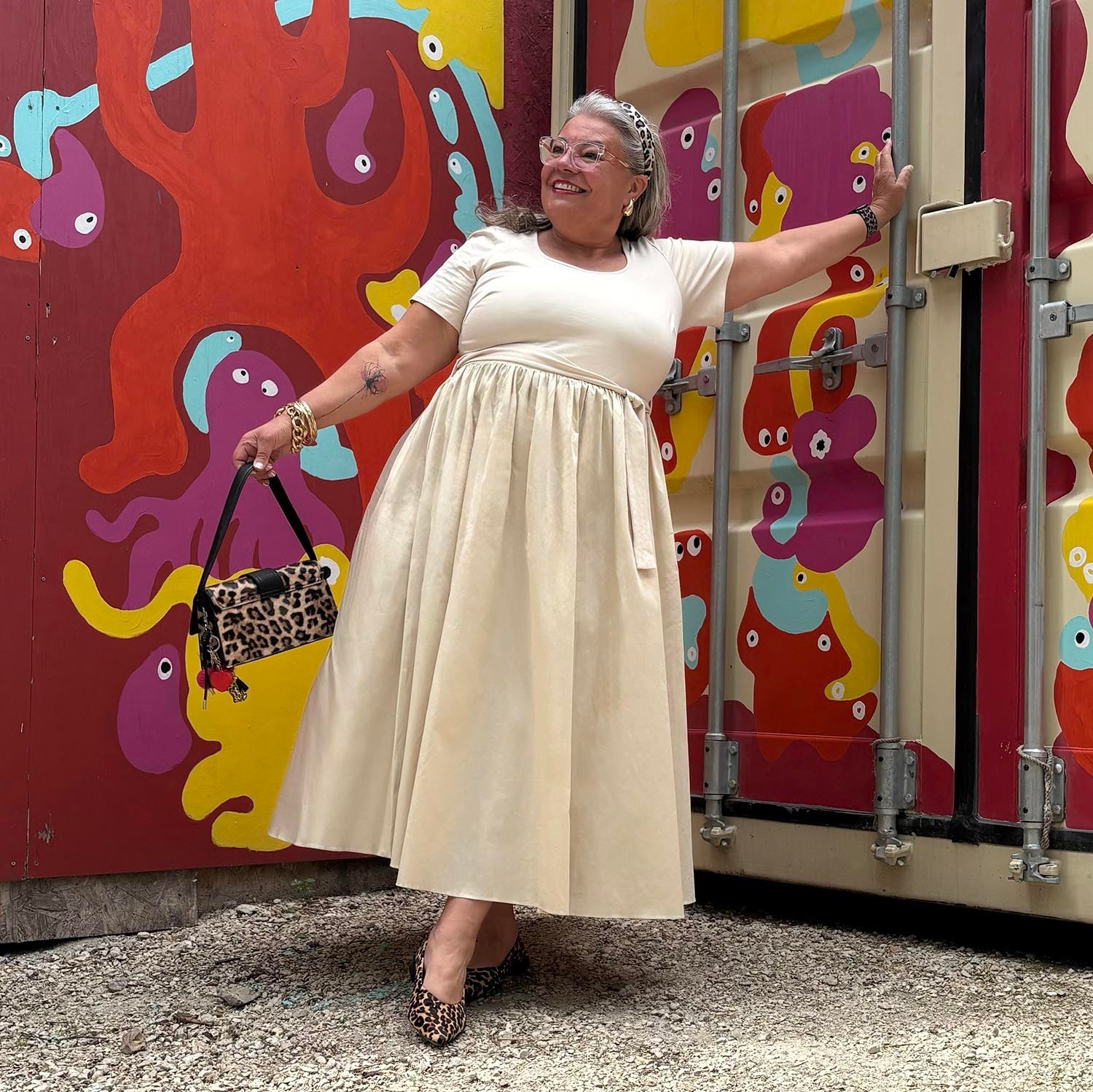 The beautiful, earthy neutral shade is the perfect canvas for your adventures. The design is a clever combination of comfort and style: the top half feels like your favourite soft jersey tee, while the sweeping, ankle-length skirt is made from crisp 100% cotton poplin that moves beautifully as you walk. It’s built for a perfect, easy-to-wear fit, with an elasticated waist that features a matching tie and belt loops to create a custom silhouette. Gentle shaping at the bust creates a smooth shape, and of course, we included the deep, practical side pockets you can always count on.