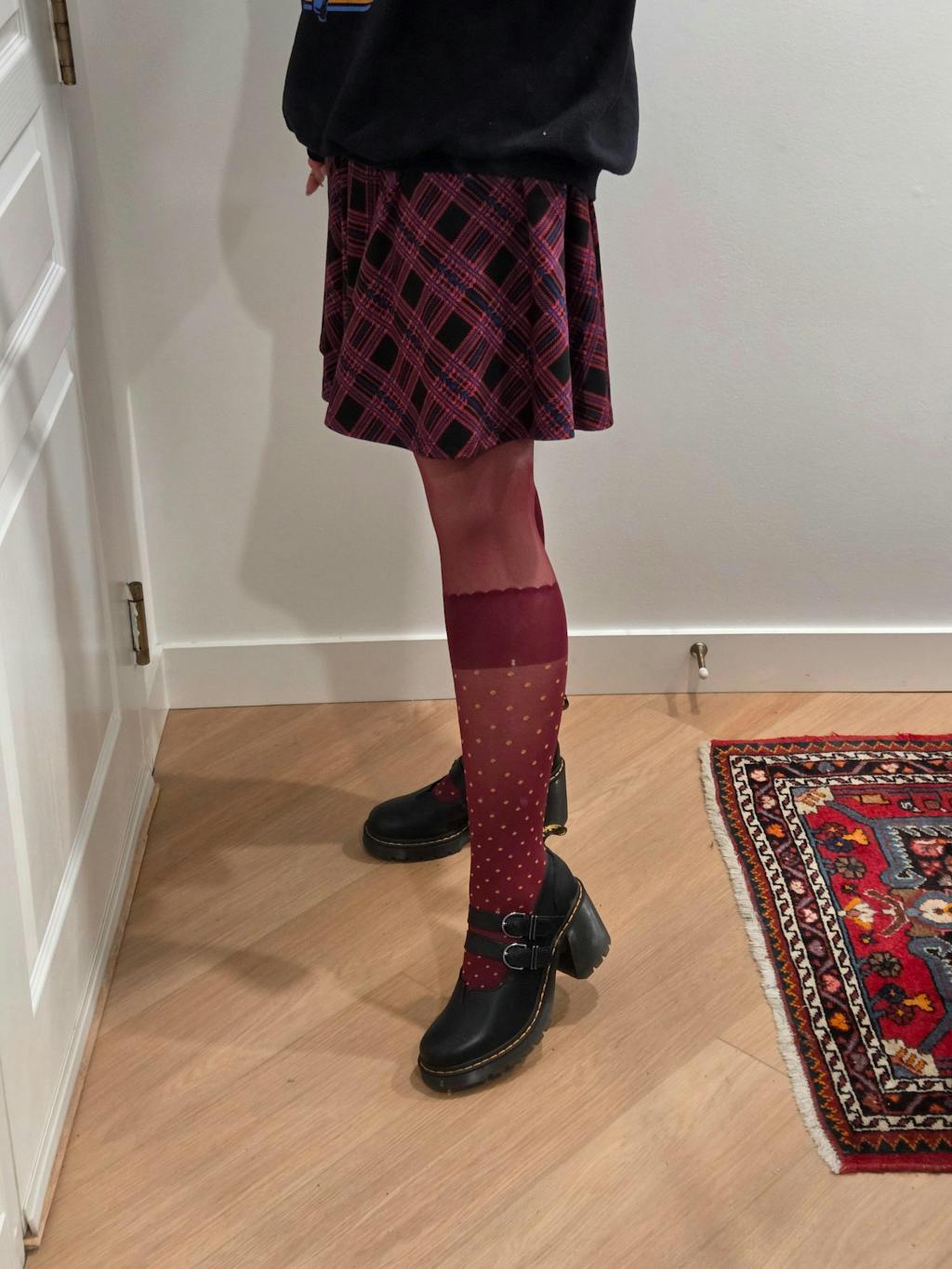 - The Look: These opaque burgundy tights aredesigned to mimic the look of wearing socks over sheer tights, giving you a layered, fashion-forward aesthetic without the bulk.