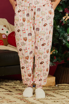 Our Sweet Treat PJ Bottoms make bedtime feel like the best tea party ever. A proper celebration of Britain’s finest cakes and puddings (think Battenberg, Bakewell tart, Victoria sponge, chocolate Swiss roll, trifle, French fancies and a scattering of tiny hearts) all tumbling across soft pink and white candy stripes.