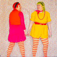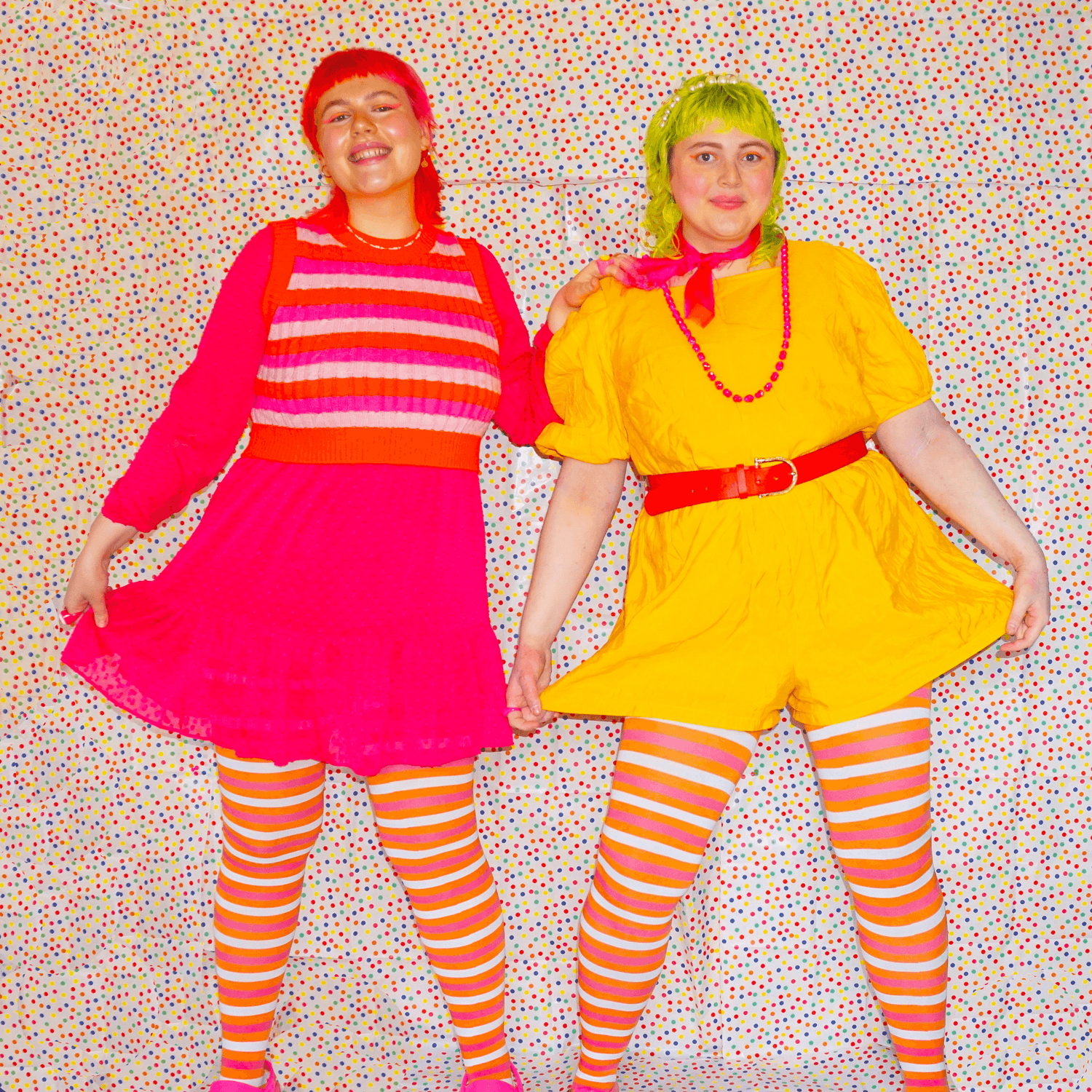 Step out in the vibrant colours of the lesbian pride flag in our Ruby tights.
