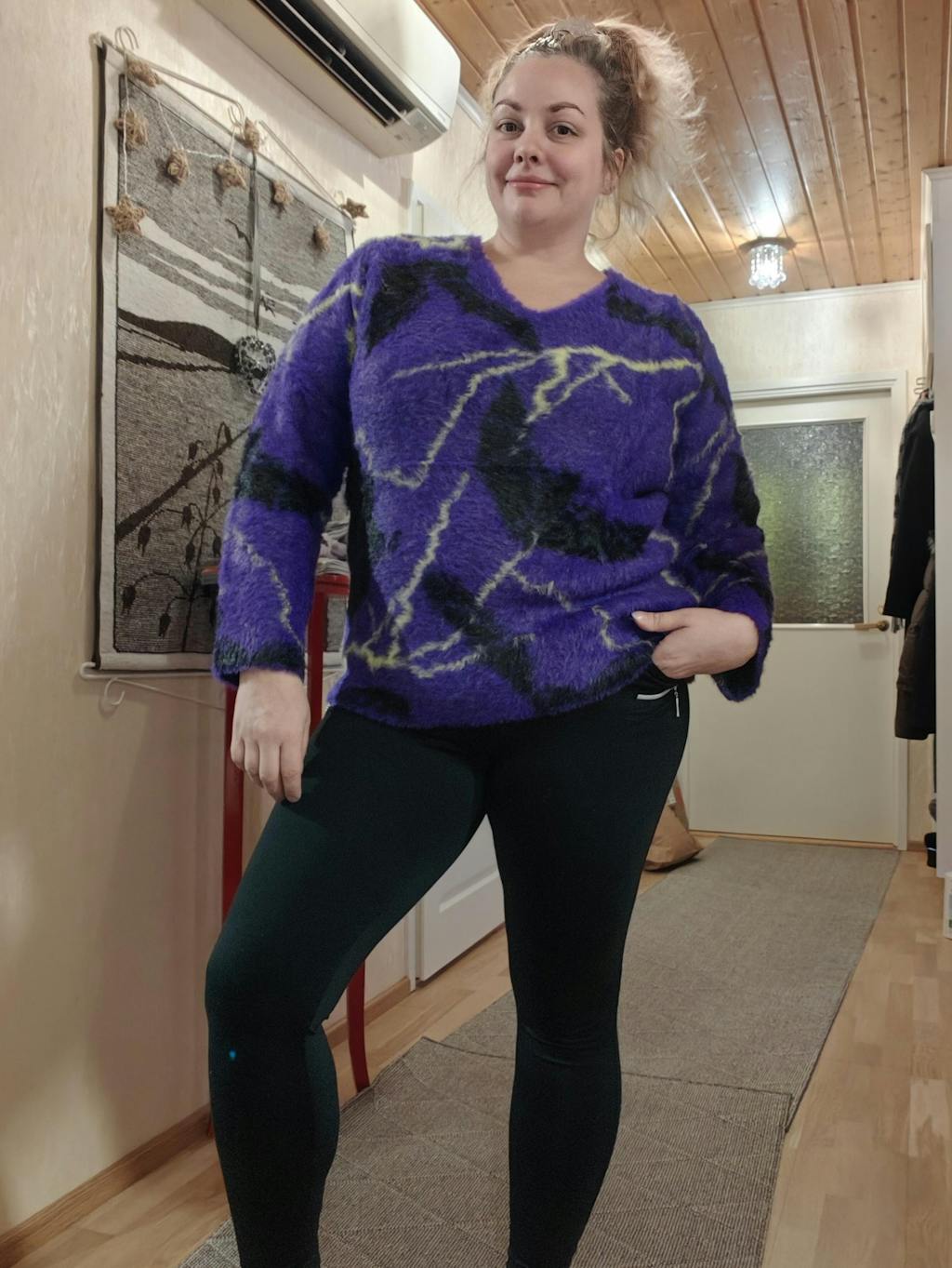 Sometimes you just need the cosiest jumper to make the world right again and the Storm Fluffy Jumper is what you need. Made from dreamy faux fur yarn that’s so soft, it’s like being hugged by a cloud. And the details? Black bats and flashes of yellow lightning streaking across an enchanted coloured base.