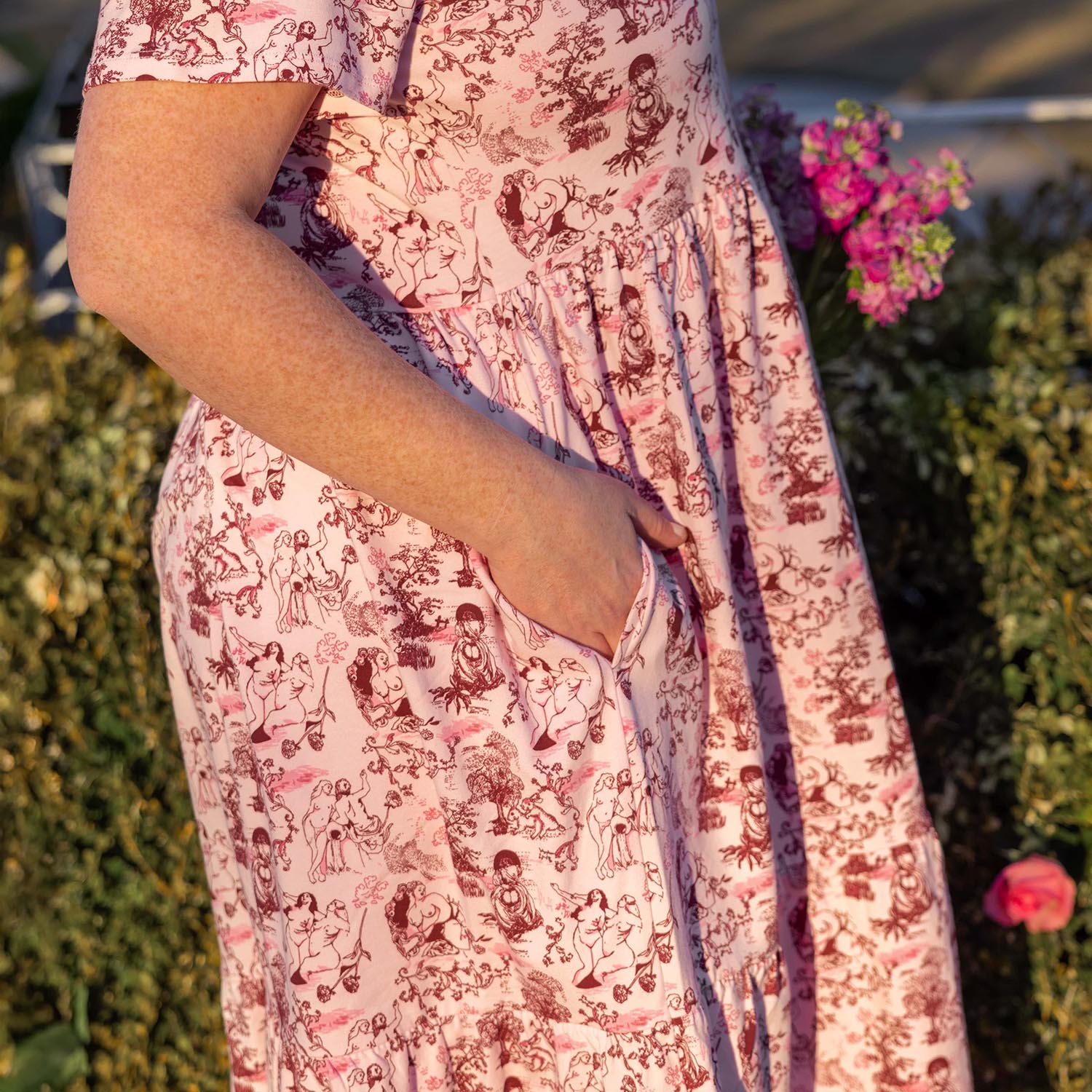 Crafted from luxurious Aegean cotton, this dress combines breathability and softness for ultimate comfort, making it perfect for any occasion. And let's not forget those fabulous deep pocketsāso spacious, you can leave your bag at home! Adorned with a chic Toile de Jouy pattern, this dress is a stylish standout that will have you turning heads wherever you go. Step into sophistication and charm with this must-have tiered dress!