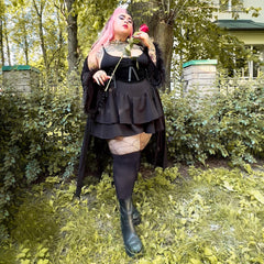 Get the look of a classic garter and stockings without any of the faff. A spooky spin on our popular Frank mock garter style, our Venom tights feature a sexy cobweb design that sits high on the thigh for a look that’s built for comfort. It’s the perfect way to add some gothic glamour to your outfit.